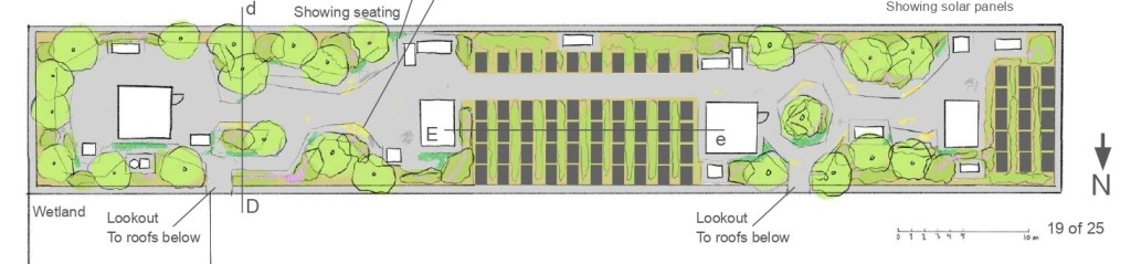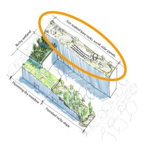 Bare rocks är den del av taket som fokuserar på människans behov. Solpaneler blir ett av flera människocentrerade inslag på taket.