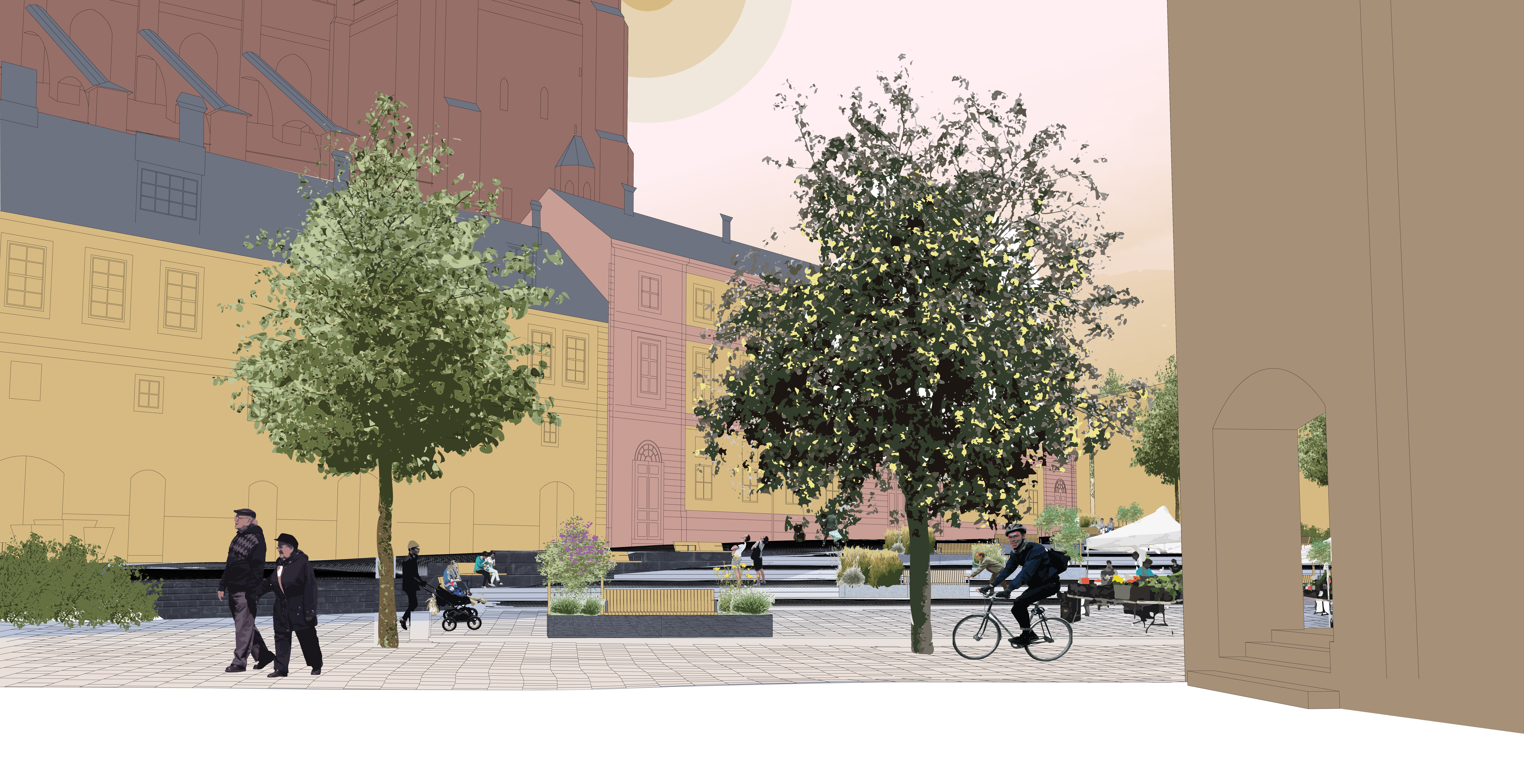 St: Eriks torg i Uppsala är ett geografiskt och kulturellt centralt torg. Intill torget ligger Uppsala domkyrka, saluhallen, det gamla huset för Universitetets styrning och vetenskapsakademin, som fasta kulisser. Men precis nedanför kyrkomuren ligger också falafelvagnarna, torglivet möter dessa åldriga fasader. Problematiken sammanfattades i frågeställningen: hur skapar vi ett torg som kan aktiveras i en kulturellt viktig kontext? För att svara på detta användes konceptet Från kuliss till aktör.